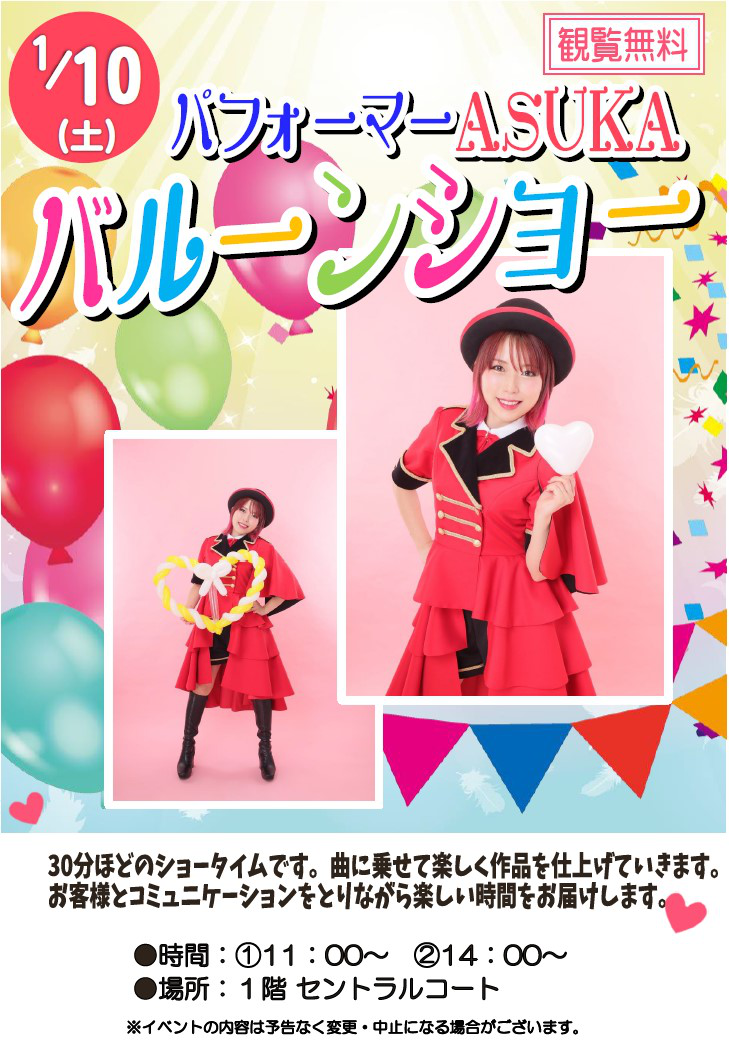 | バルーンショー2026-01-10 パフォーマーASUKA 2025/12/29 更新 |