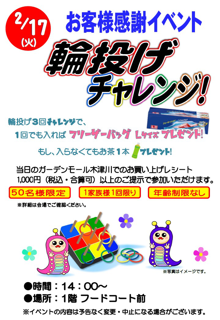 | 輪投げチャレンジ!2026-02-17 お客様感謝イベント 2026/01/26 更新 |