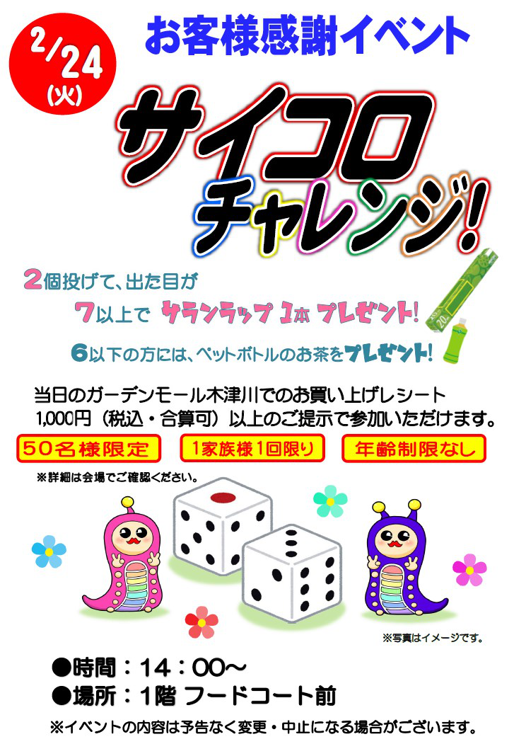 | サイコロチャレンジ!2026-02-24 お客様感謝イベント 2026/01/26 更新 |