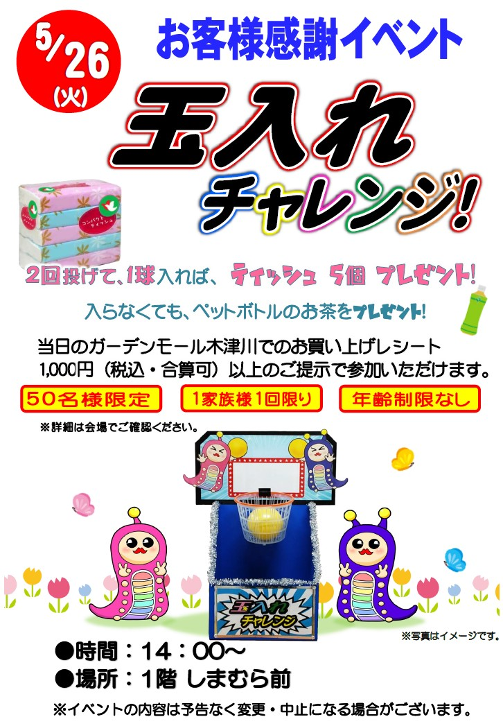 2回投げて、1球入れば、『ソフトパックティッシュ5コ』プレゼント!