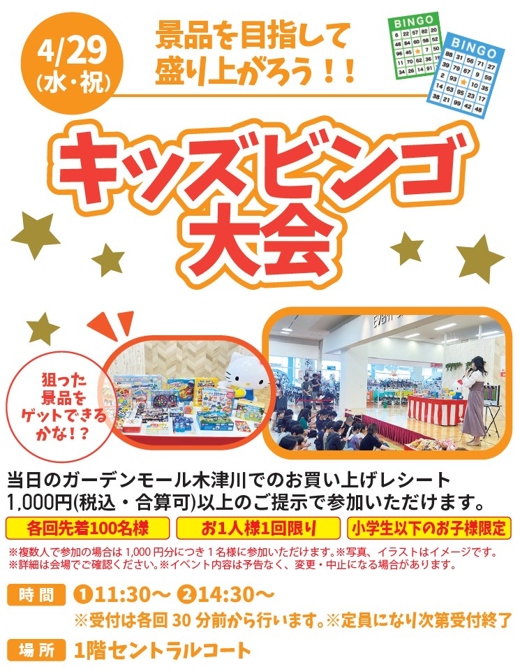 | キッズビンゴ大会2026-04-29 景品を目指して盛り上がろう!! 2026/04/17 更新 |