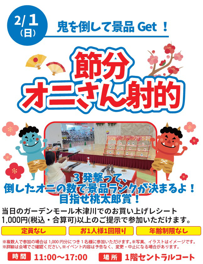 | 節分オニさん射的2026-02-01 鬼を倒して景品Get! 2026/01/26 更新 |
