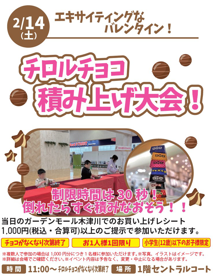 | チロルチョコ積み上げ大会!2026-02-14 エキサイティングなバレンタイン! 2026/01/26 更新 |