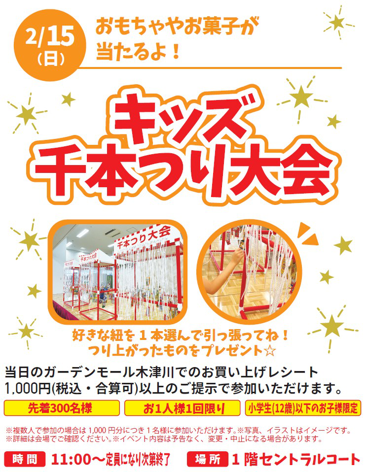 | キッズ千本つり大会2026-02-15 おもちゃやお菓子が当たるよ! 2026/01/26 更新 |