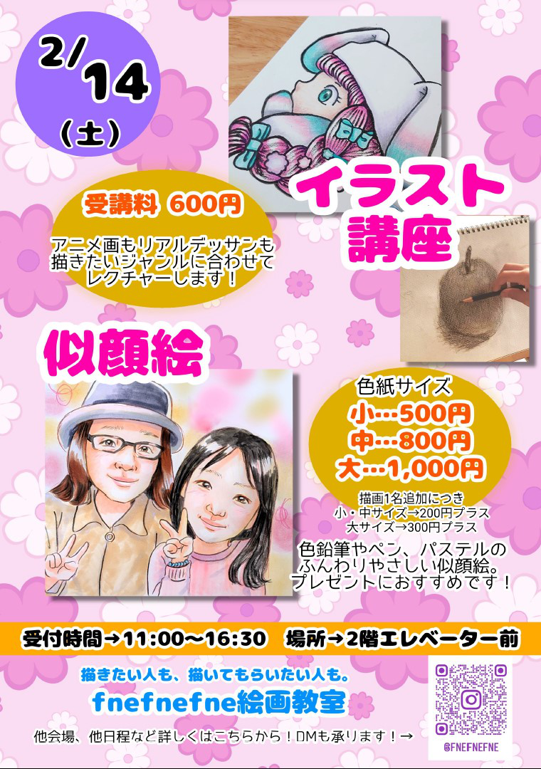 | イラスト講座&似顔絵2026-02-01 絵を描きたい人も、描いてもらいたい人も。 2026/01/26 更新 |