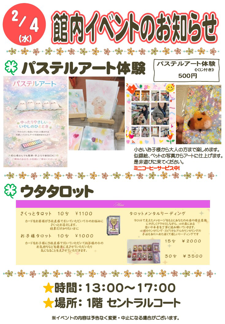 | 館内イベントのお知らせ2026-02-04 パステルアート体験 2026/01/26 更新 |