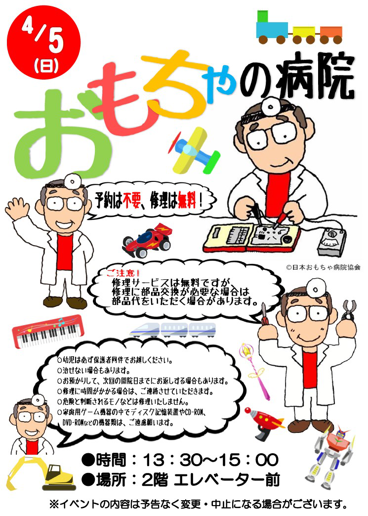 | おもちゃの病院2026-04-05 予約は不要、修理は無料! 2026/03/23 更新 |