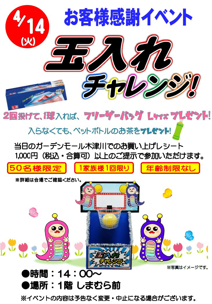| 玉入れチャレンジ!2026-04-14 お客様感謝イベント 2026/03/23 更新 |