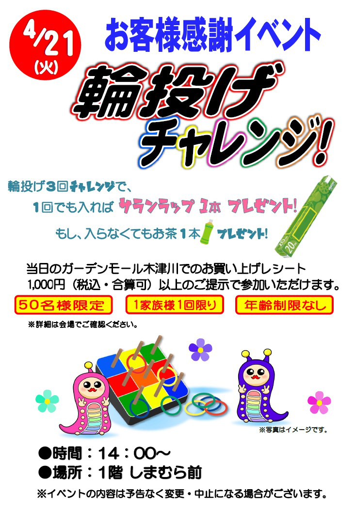 | 輪投げチャレンジ!2026-04-21 お客様感謝イベント 2026/03/23 更新 |