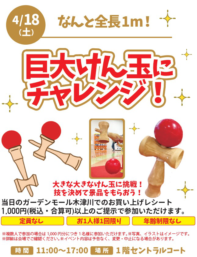 | 巨大けん玉にチャレンジ!2026-04-18 なんと全長1m! 2026/03/23 更新 |