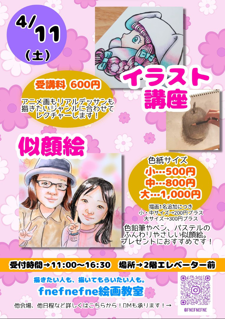 | イラスト講座&似顔絵2026-04-11 絵を描きたい人も、描いてもらいたい人も。 2026/03/23 更新 |
