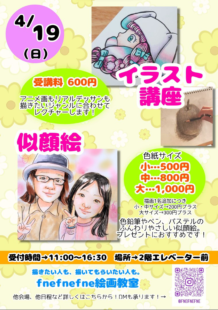 | イラスト講座&似顔絵2026-04-19 絵を描きたい人も、描いてもらいたい人も。 2026/03/23 更新 |