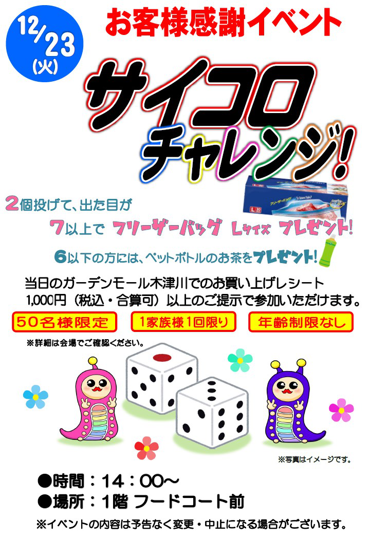 2個投げて、出た目が7以上で『フリーザーバッグ Lサイズ』プレゼント!