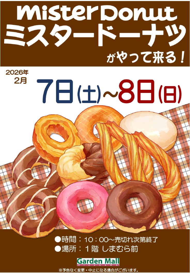 2/7(土)~8(日) 出張販売「ミスタードーナツ」
