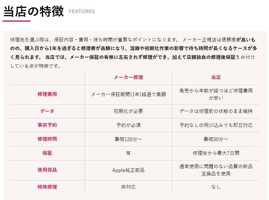 ![]() | オープンキャンペーン『バッテリー交換30%OFF』2026.03.14更新 3/31(Tue)までオープンキャンペーン開催! iPhone・Androidスマートフォン・iPad・タブレットのバッテリー交換が30%OFFと大変お得になっております。 この機会にぜひご来店くださいませ。 |